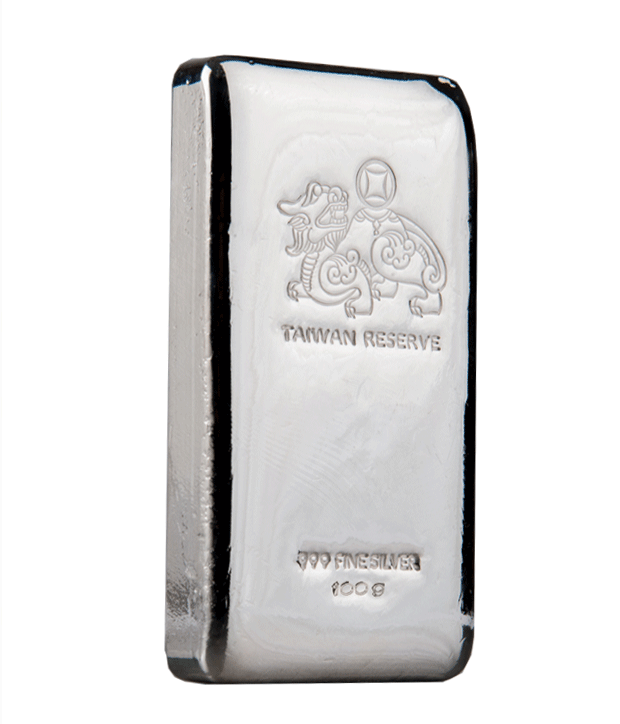 台灣儲備100公克銀條精裝版,白銀純度99.9%,尺寸:4.7 X 2.3 X 0.8 公分,包裝採真空塑膠封膜裝,上面烙印有重量、純度 及貔貅標誌,象徵聚財、福祿、吉祥。台灣儲備白銀條經全國貴金屬監督委員會及銀樓公會認證-優良貴金屬廠商「誠實標示」認 證,代表是真實的且是最好的質量,台灣儲備銀條為投資者提供了大量購買白銀的機會。