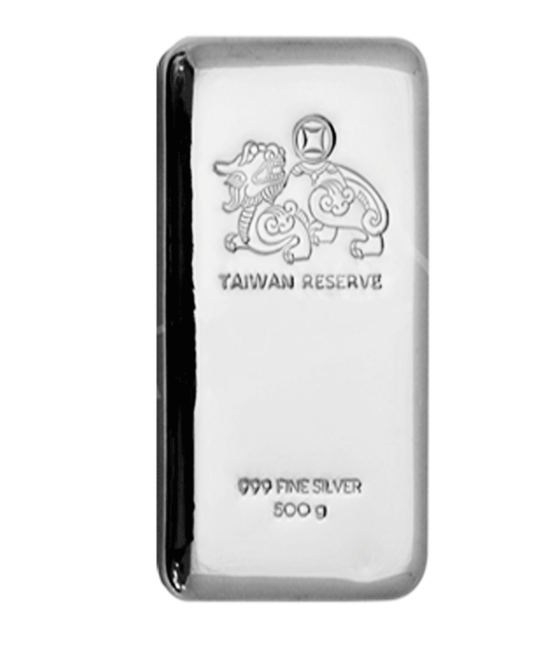 台灣儲備500公克銀條平裝版,白銀純度99.9%,尺寸:8.5 X 4.8 X 1.0 公分,包裝採真空塑膠封膜裝,上面烙印有重量、純度 及貔貅標誌,象徵聚財、福祿、吉祥。台灣儲備白銀條經全國貴金屬監督委員會及銀樓公會認證-優良貴金屬廠商「誠實標示」認 證,代表是真實的且是最好的質量,台灣儲備銀條為投資者提供了大量購買白銀的機會。